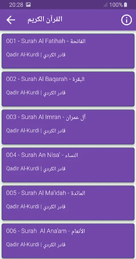 The complete application of the Noble Qur’an with the voice of the reciter Qadir Al-Kurdi allows you to hear the surahs of the Qur’an with ease so that you can enjoy reciting the Qur’an with high sound quality