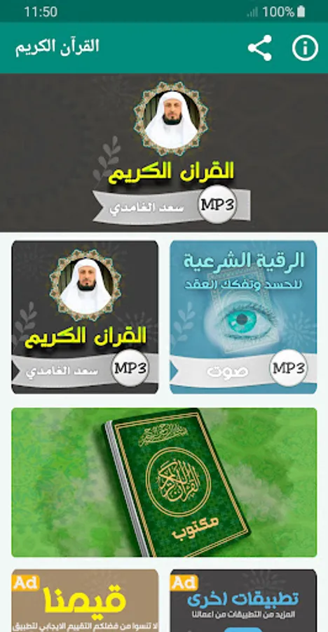 The application of the Noble Qur’an complete with the voice of the reciter Saad Al-Ghamdi, allows you to hear the surahs of the Qur’an with ease so that you can enjoy reciting the Qur’an with high sound quality
