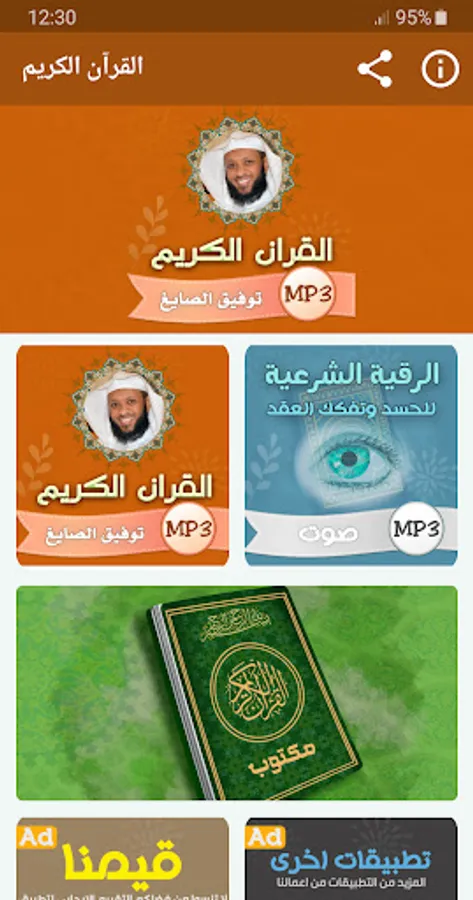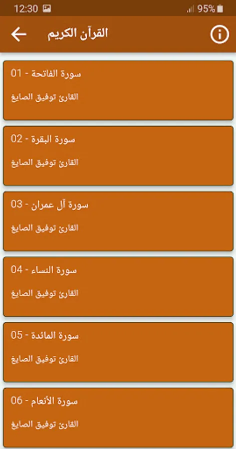 The application of the Noble Qur’an complete with the voice of the reader, Tawfiq Al-Sayegh, allows you to hear the surahs of the Qur’an with ease so that you can enjoy reciting the Qur’an with high sound quality