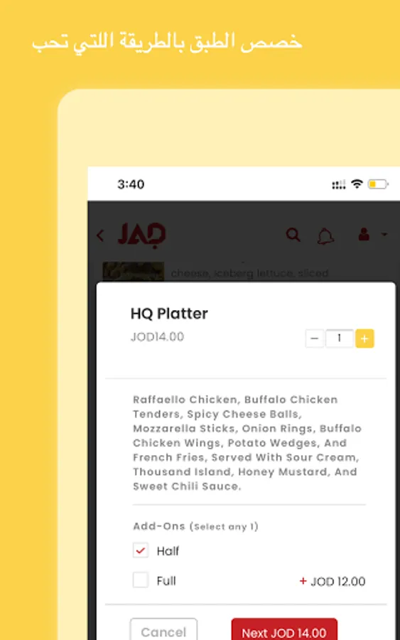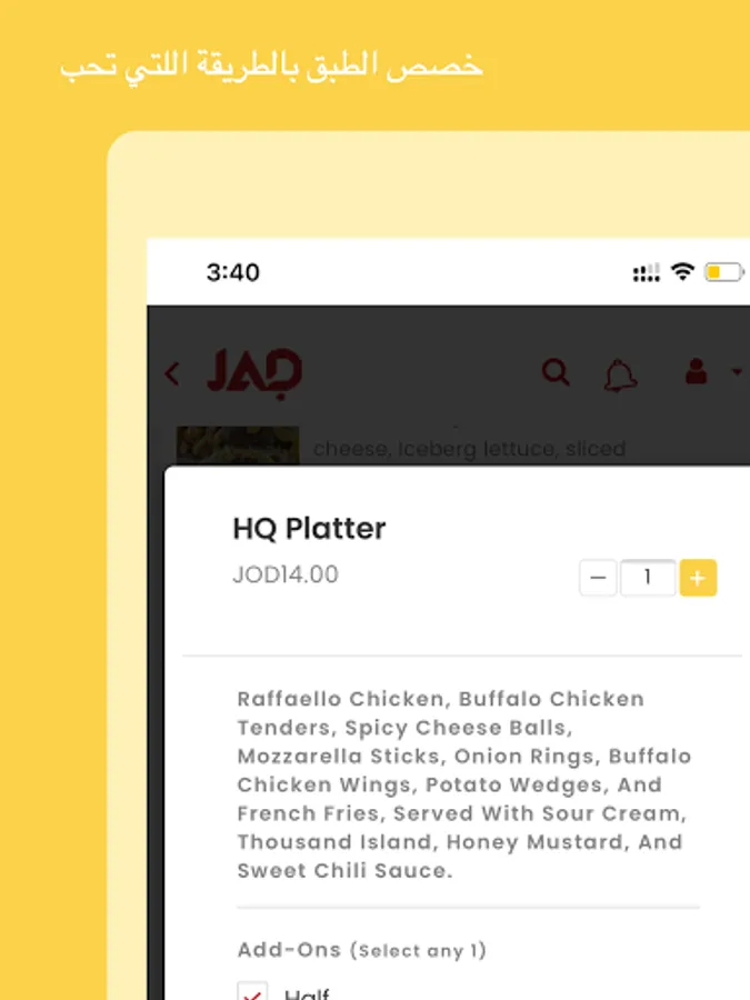 JAD Ordering - is an application allows you to ordering the food you like and get it delivered right to your address. Also, you have an option to pick up directly from the store/restaurant.