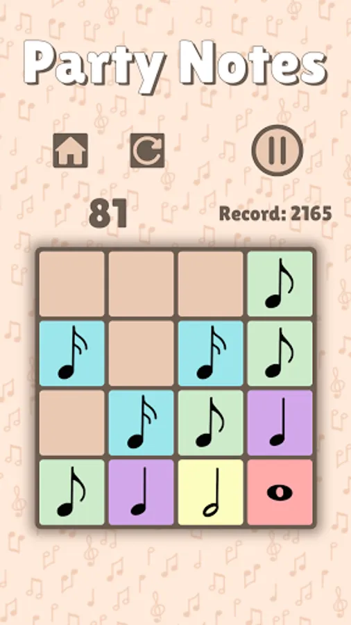 Party Notes is a musical puzzle game. In this game you will have to slide the musical figures to combine them and obtain longer duration figures that will give you more points.