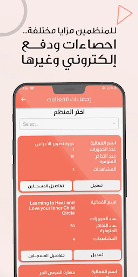 A schedule that provides you with an integrated experience, where you can browse the various events, whether sports, educational, technical, or others.