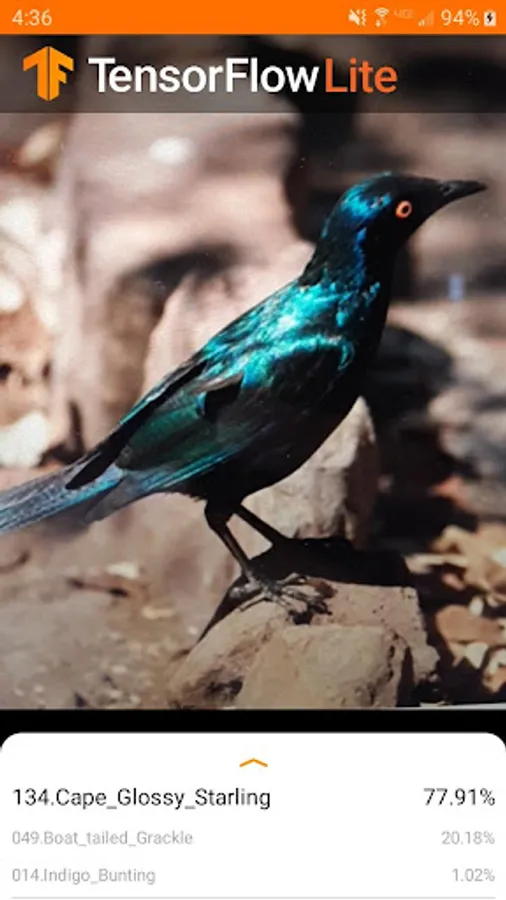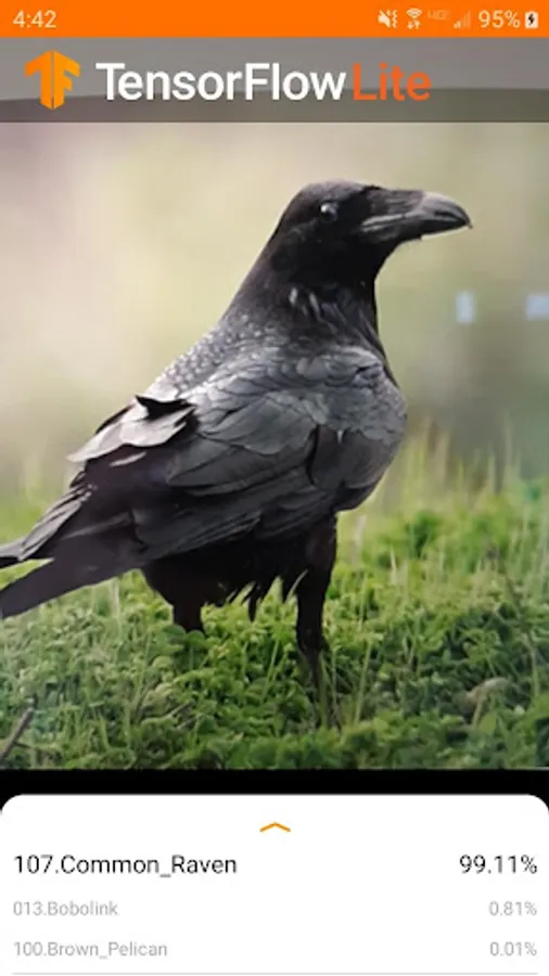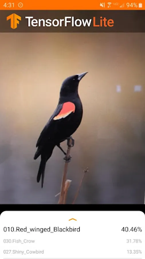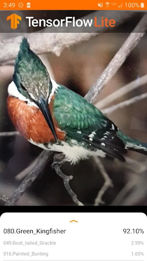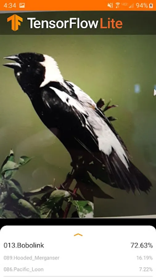 A bird species identifier made with Tensorflow Lite, using the Caltech-UCSD Birds 200 dataset. May not be compatible with tablets.