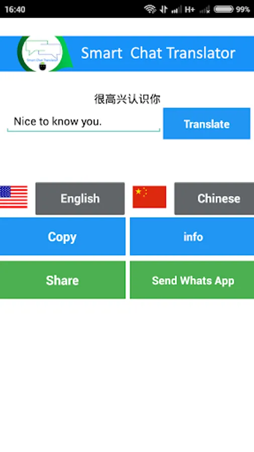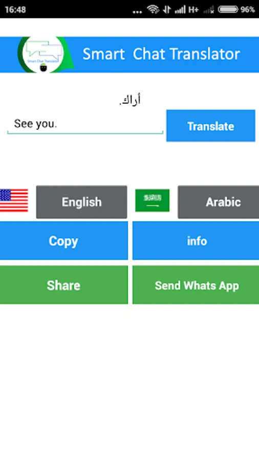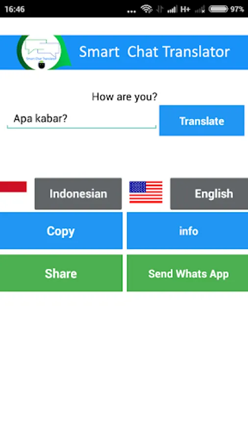 Smart chat translator is an interactive platform that can help you easily translate chats in multiple languages. Select an origin language and choose a language that you want to translate.