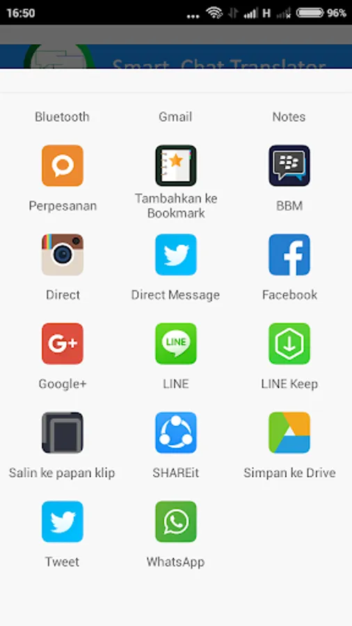 5. Share translate results to your social media account or note.