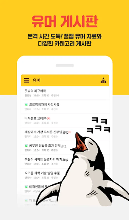 Collect the best information of the day such as Bobaedream, Mpack, Oyu, Kliang, SLR, Pompoo, Today's Humor, Utdae, DC Inside, Natepan, etc. Enjoy all the funny stuff!