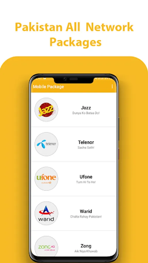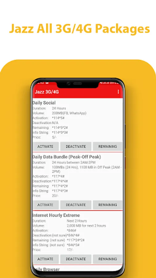 All Mobile package Pakistan 2019 contain all network packages of Pakistan. User of application can Activate, Deactivate, checking remaining/status package present In application.