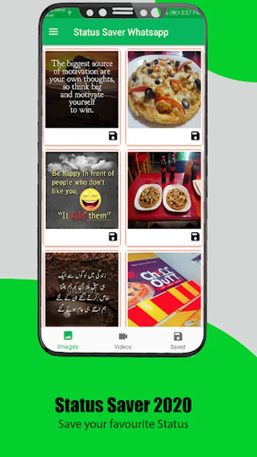 The Status Saver application in sync with your Whatsapp. Once you open the status saver you can see your and your friends' statuses. There are three panes in the application . One for the Post Status . The second is for the Video status and the last one for saving statuses. This app is Super-Fast and 100% free to Download.