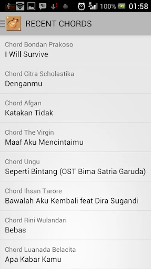 Accompany you who often spare time to play guitar and sing the latest songs or songs you like just install and open the application Gitaran Yuk!. Simple application to search for lyrics accompanied by guitar. No need to painstakingly search key and ga have to memorize the key. Do not forget to use the favorites feature so as not to distress looking for a song that you like. :)