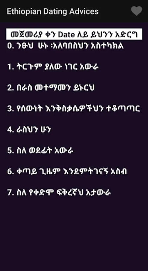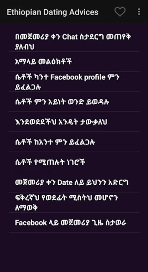 የጠበሳ ዘዴ Ethiopian Dating Advice እንዴት የሴት ጓደኛ መያዝ እንዳለብ የሚያስረዳ መተግበሪያ ሲሆን በውስጡ የተለያዩ ዘዴዎችን ይዞል።