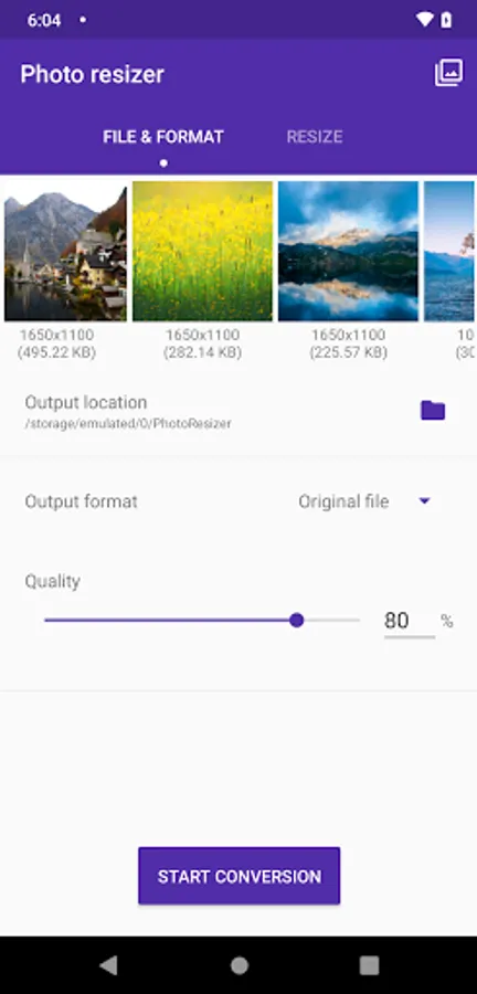With Photo resize you can decide in what format you want to save images. If you select JPG, you can also select quality and this helps you downsize images even more.
