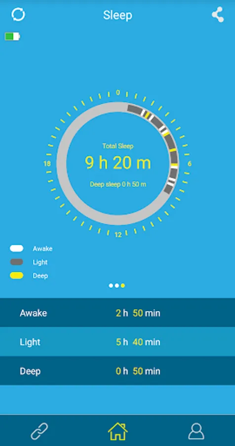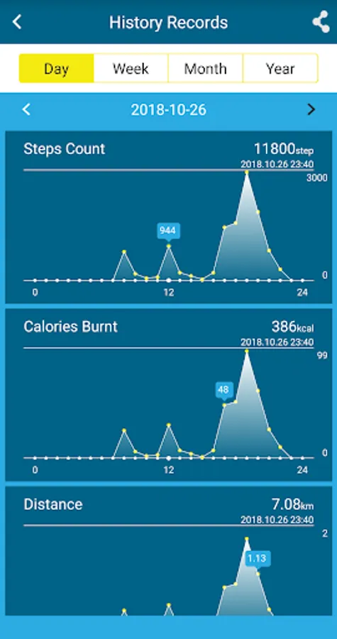 * Detailed graph of activity, which shows the step count history for a week, month & year. Displays the same for sleep monitoring; it shows the hours of total sleep, deep sleep & light sleep.
