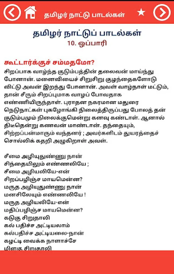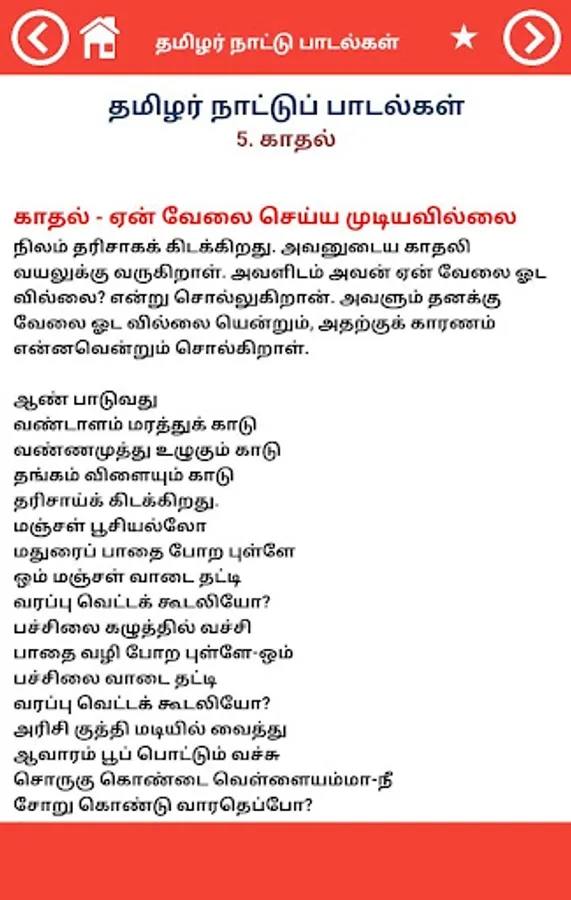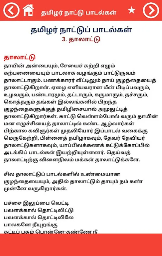 Tamizhar Naatu Padalgal (தமிழர் நாட்டுப் பாடல்கள்) is a collection of Tamil Folk Songs in Villages at various genre.