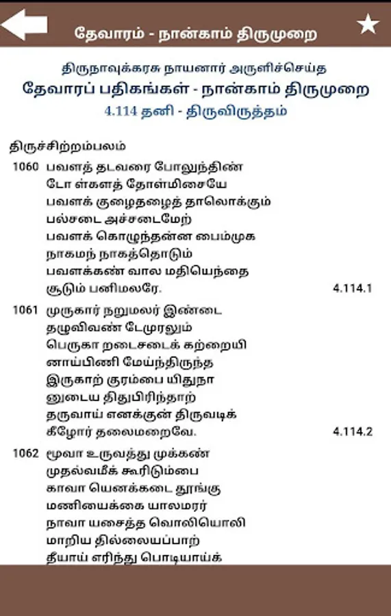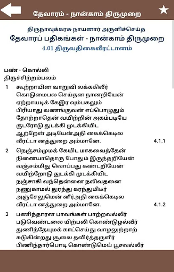 Thevaram – Naangam Thirumurai (தேவாரம் - நான்காம் திருமுறை) is written by Tirunavukkarasu Naayanar (Appar).