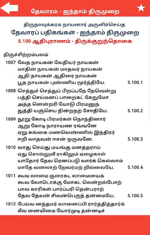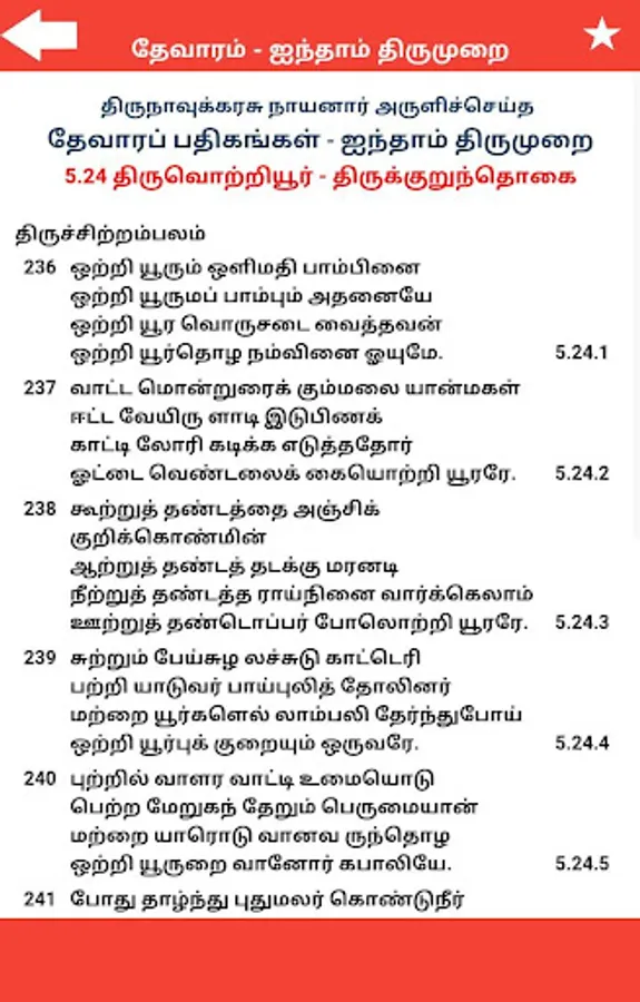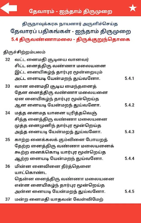Thevaram – Iynthaam Thirumurai (தேவாரம் - ஐந்தாம் திருமுறை) is written by Thirugnanasambandha Swamigal (Sambandar).