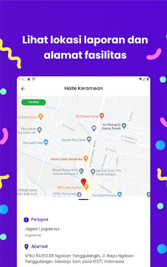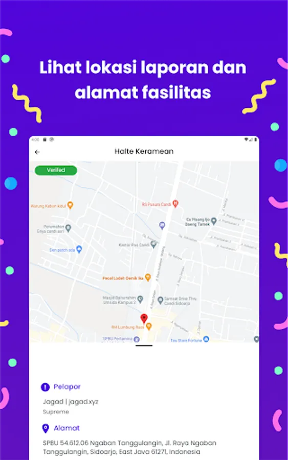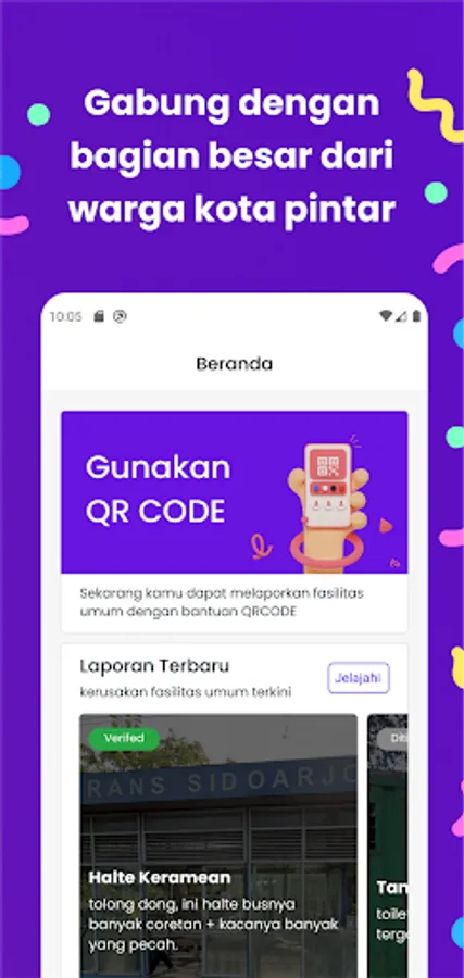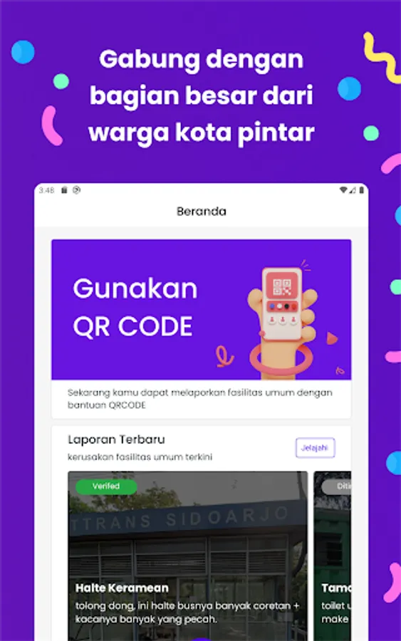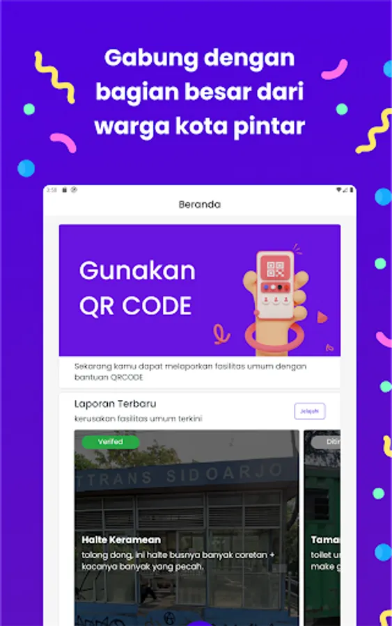 CitizenApp is a mobile application that allows residents of Sidoarjo to report damage to public facilities by simply scanning a QR code. This application works by asking users to scan a QR code found in every public facility in Sidoarjo, then uploading photos and descriptions of the damage.