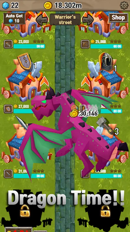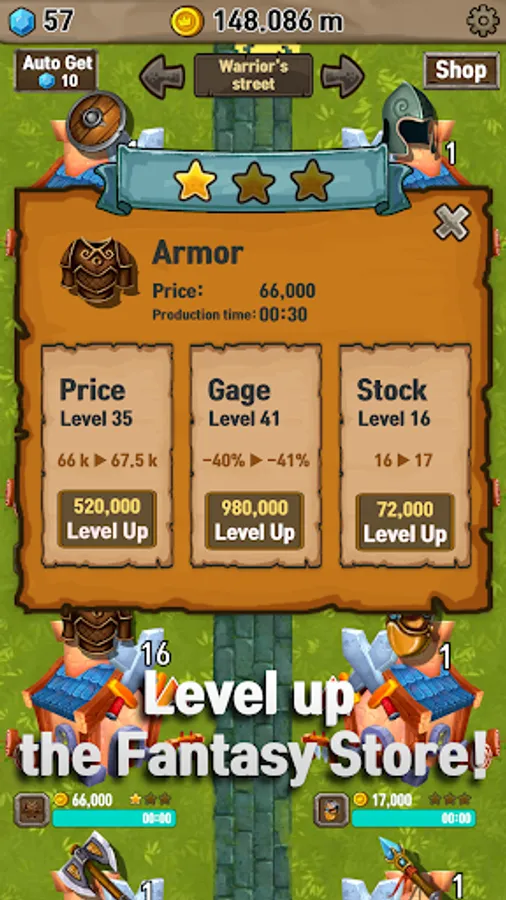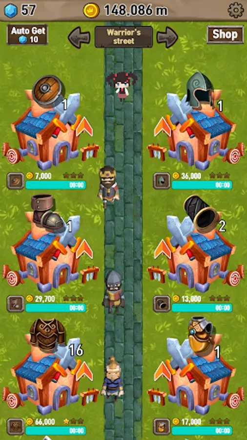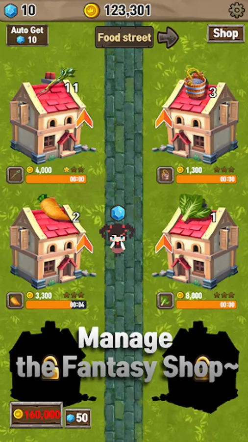 You can open various shops in Food Street, Warrior Street, Wizard Street and upgrade items.