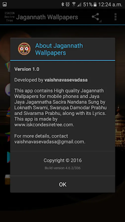 This app contains High quality Jagannath Wallpapers for mobile phones and Jaya Jaya Jagannatha Sacira Nandana Sung by Loknath Swami, Swarupa Damodar Prabhu and Sivarama Prabhu, along with its Lyrics.