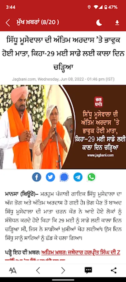 Jagbani, the most compatible Punjabi App to provide comprehensive coverage over Indian news, Punjabi news, National & International news and local news. All the up-to-the-minute breakthroughs are available here on this application in just a single click. Enjoy elite stories and stay updated over the latest news, breaking news, top Punjabi news with in-depth coverage from trending 18 sections available in one App.
