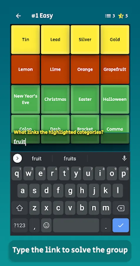 Once the 4 groups have been found, you must type the reason behind their relation!