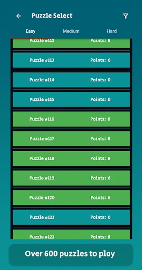 This game includes hundreds of puzzles at 3 difficulties - easy, medium, and hard.
