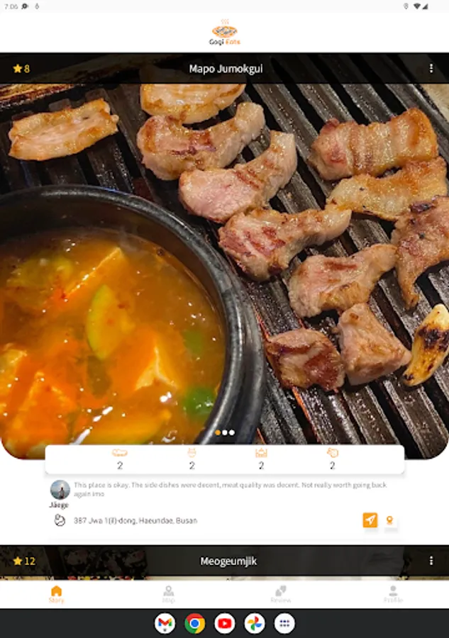 Gogi eats is a review app specifically for Korean barbecue restaurants.