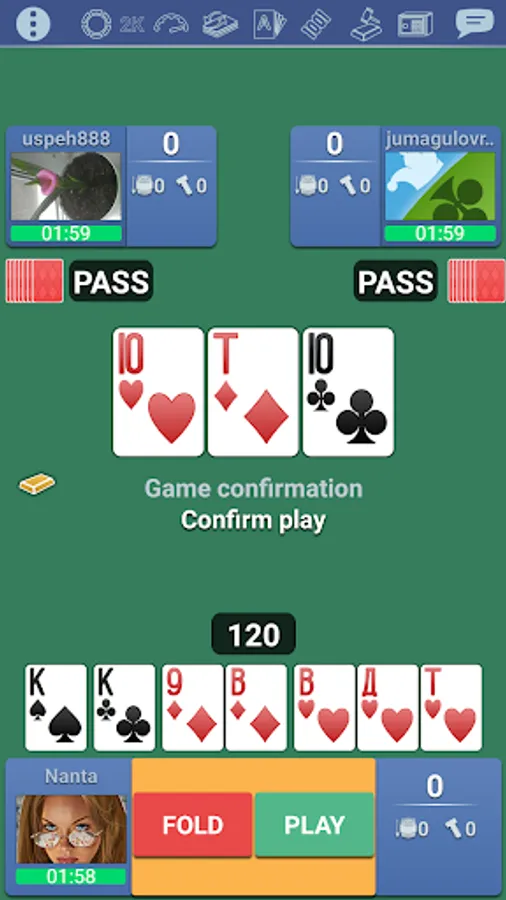 * Thousand is an intellectual game, just like backgammon and poker. Here, luck fades into the background. Our Thousand game has a complete description of the rules, available even during the game.