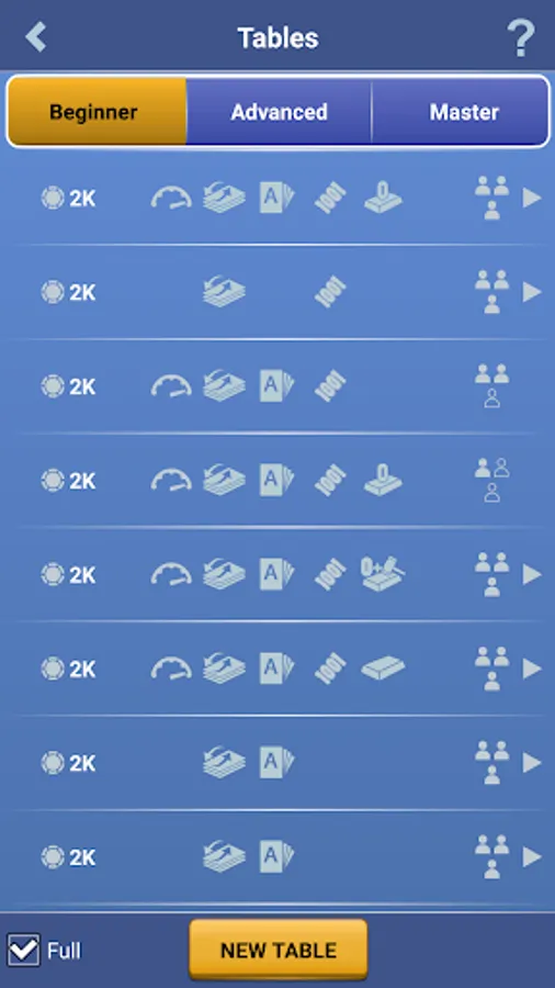 * To find a suitable game, use the convenient table list with visual pictograms of all table settings.