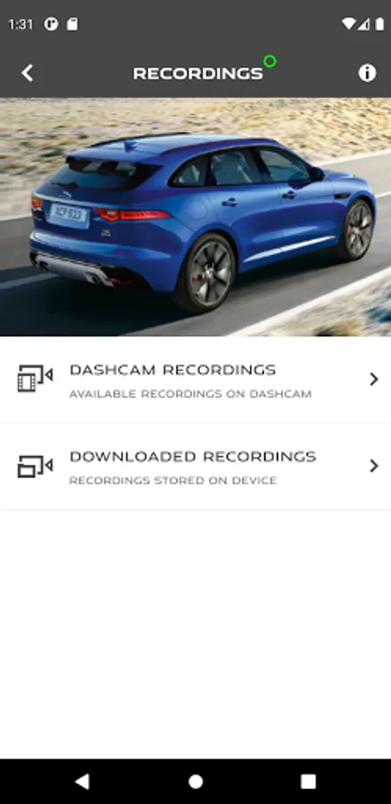 The Jaguar Dash Cam app is only for use with the Jaguar Genuine Accessory Dash Cam