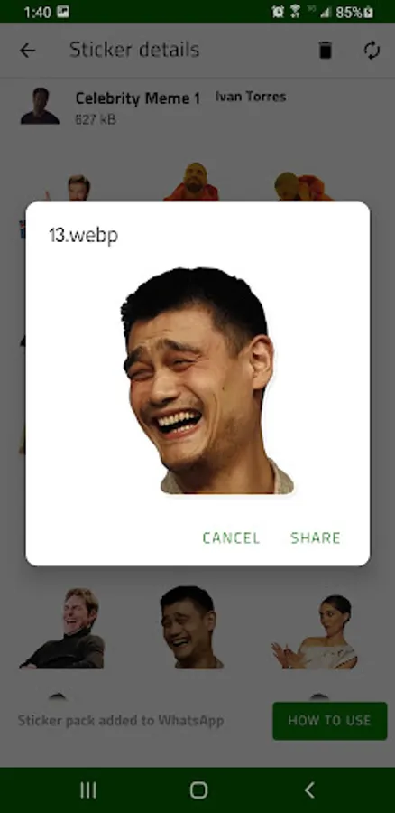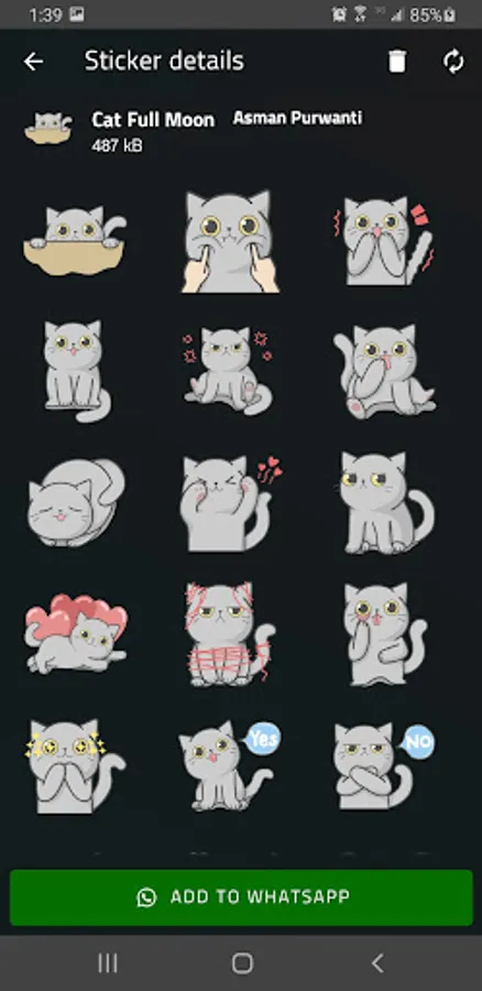 2. After the sticker is downloaded, you'll see a full preview. Click on Add to WhatsApp button if you like the sticker pack