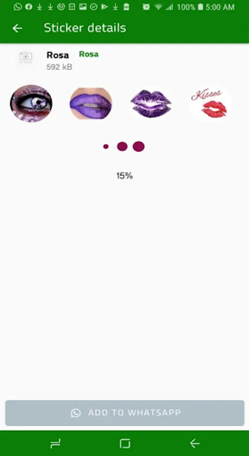 2. After the sticker is downloaded, you'll see a full preview. Click on Add to WhatsApp button if you like the sticker pack