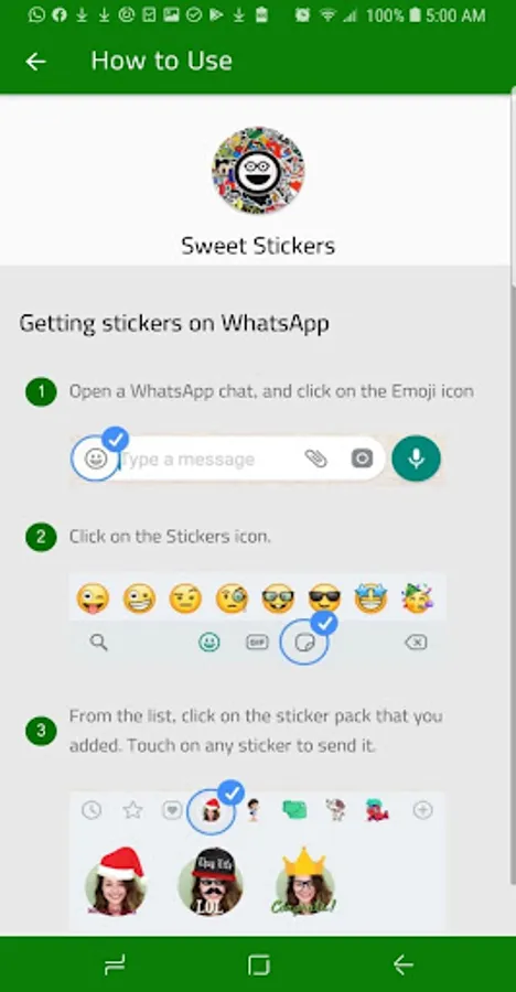 Using Sweet Stickers for free WhatsApp stickers