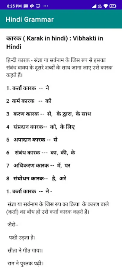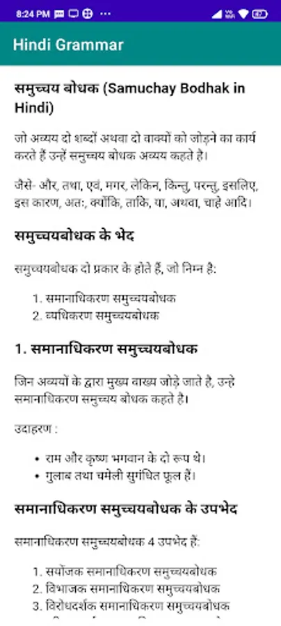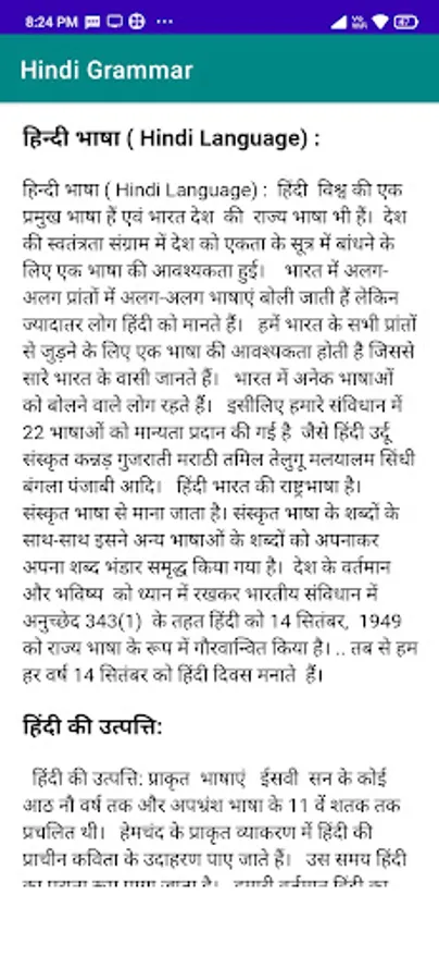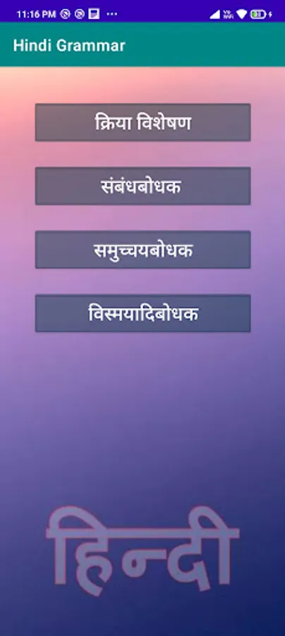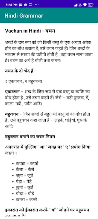Hindi Grammar (हिन्दी व्याकरण) app content: