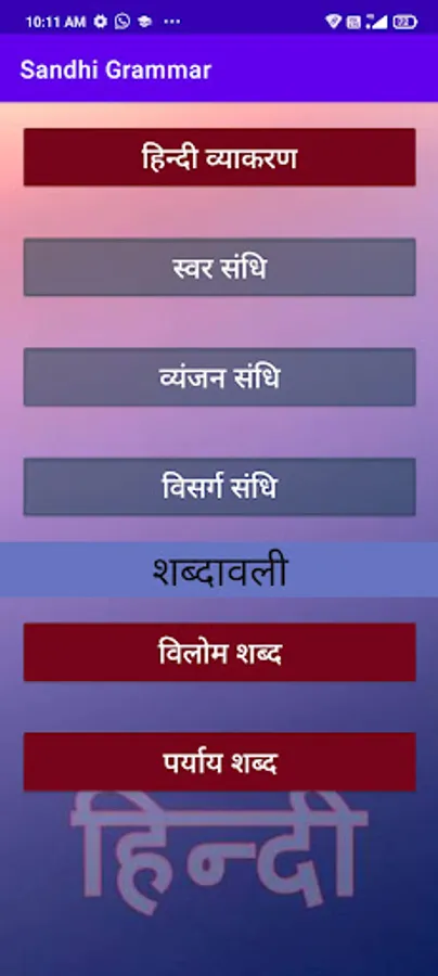 This is a learning app for Sandhi in Hindi grammar with offline. Sandhi ke prakar, Sandhi paribhasha, you may understand easily. In this app Hindi opposite words and synonyms available with search option. This Hindi Sandhi app is useful for all students and teachers who want to learn about Sandhi, sandhi ke prakar, sandhi paribhasha, hindi me sandhi.