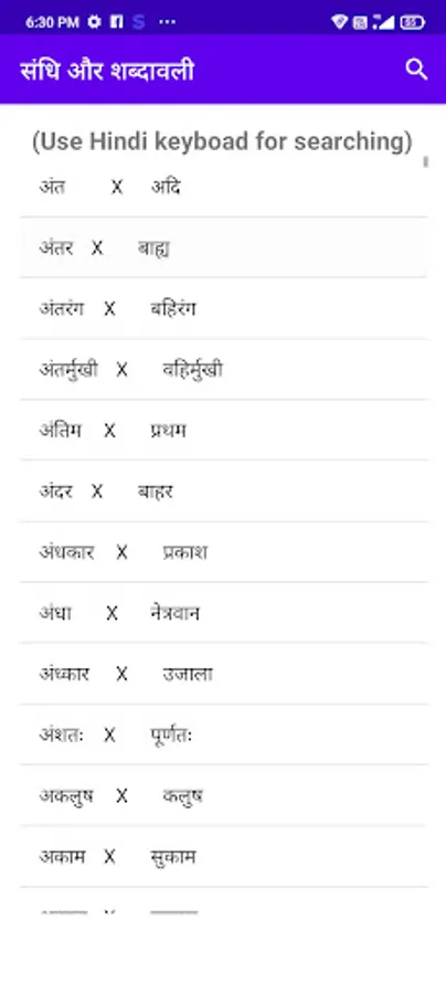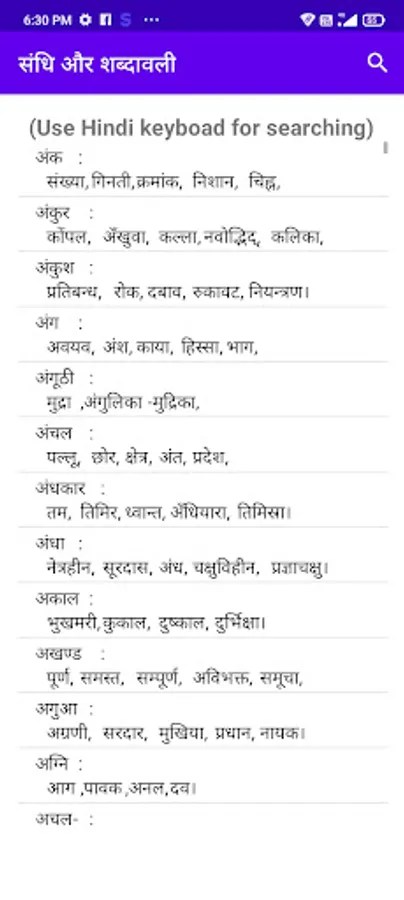 In this app we added paryay shabd in hindi, vilom shabd in hindi that means hindi synonyms and hindi antonyms words added with offline searching.