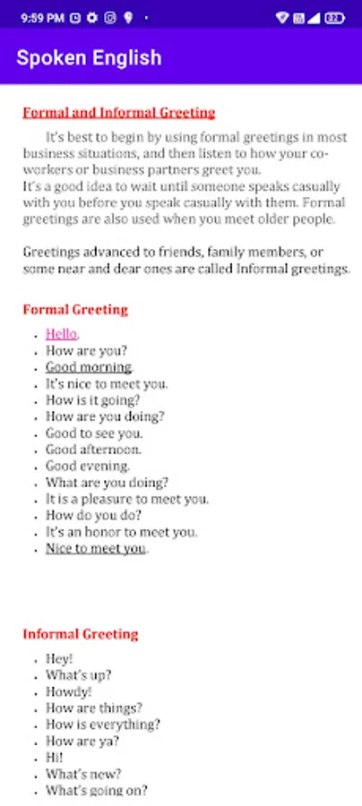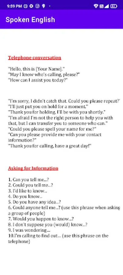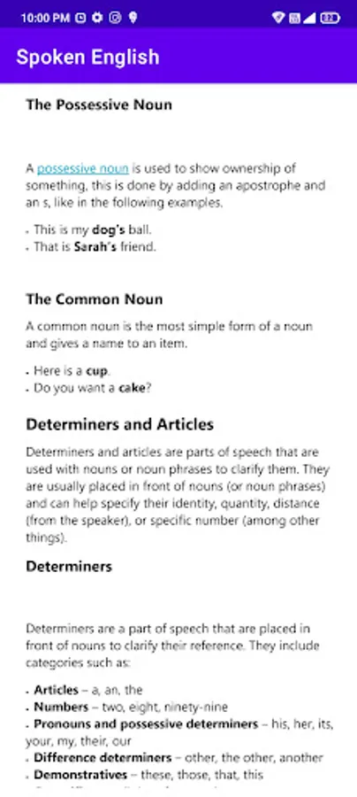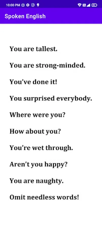 This app is most useful for Students and learners who wants to spoken English. In this app we provide the English grammar also. And important daily use English sentences given for your practice.