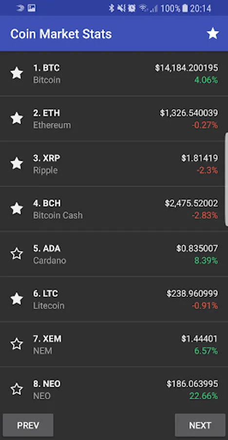With this samsung galaxy application for edge screen you can see market stats for a lot of crypto coins: Cryptocurrency market cap rankings, capitalizations and more.