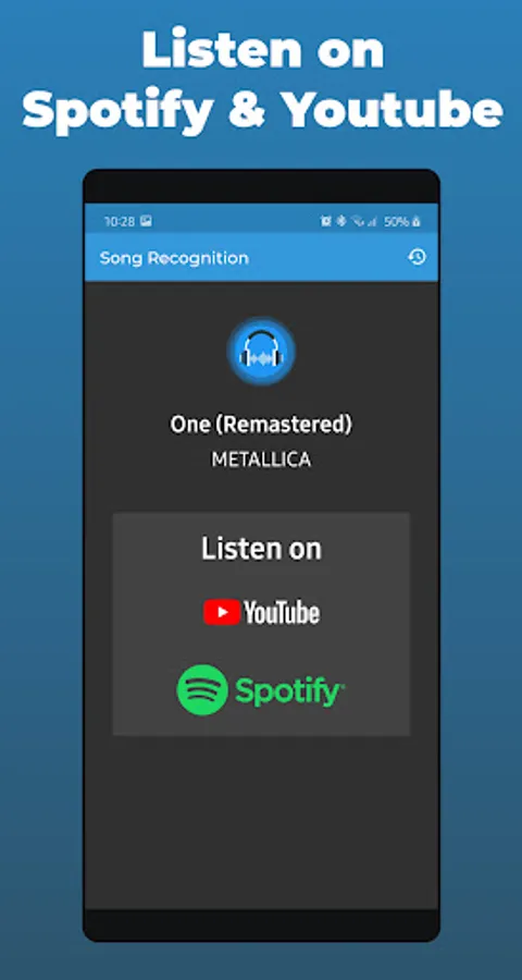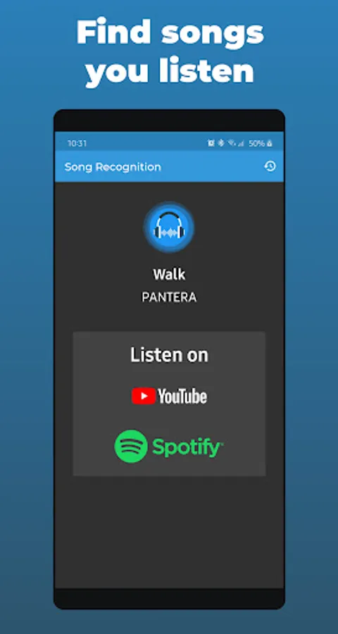 Simply press the button and the application will start recognize for free what the music is sounding and will detect that song. Totally useful when your are on a bar, pub or disco and you don't know what is the song you are listening.