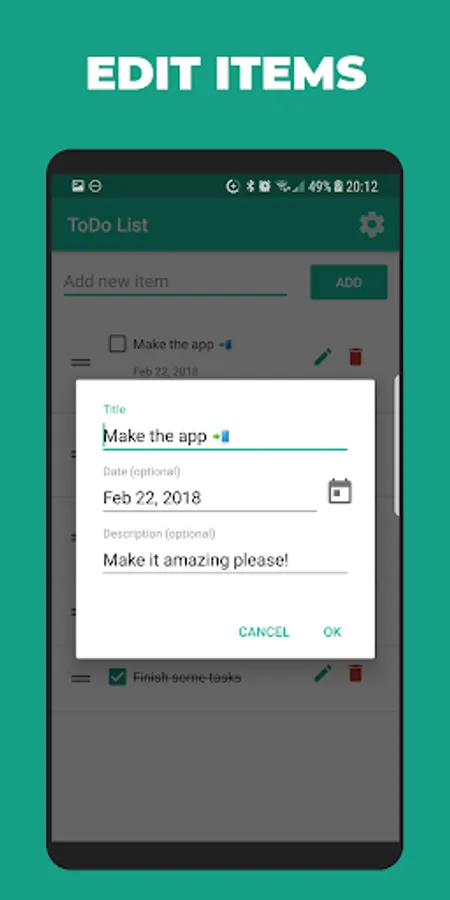 Add as many tasks you want to this to do app. It will be shown on the list and on your edge panel if you have a Samsung compatible device (s7 edge, s8, s8+, note 8...)