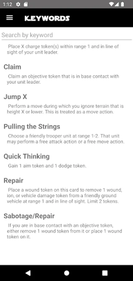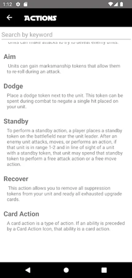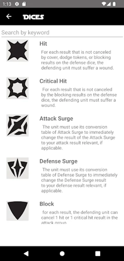 How many times has it happened to you as a player that you don't know what a certain ability of a unit listed on a command card or unit card means, you have doubts about the dice symbols, what actions my character can do, thanks to our app you can have all that information at hand.