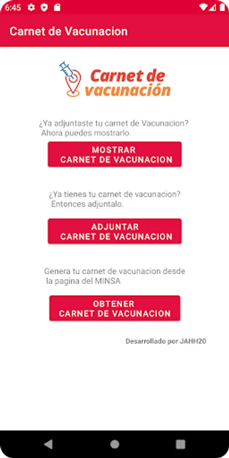 Also generate your card from the direct access of the app that will redirect you to the official MINSA website.