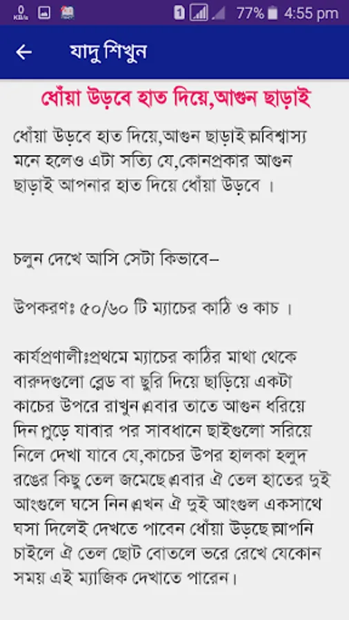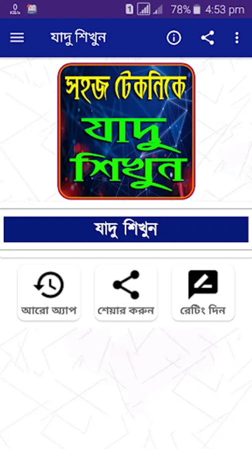 আশা করি আমাদের অ্যাপটির মাধ্যমে আকর্ষনীয় ম্যাজিক শিখতে পারবেন এবং সবাইকে ম্যাজিক দেখিয়ে চমকে দিতে পারবেন। আমাদের অ্যাপটি সত্যিই আপনার কাজে এসে থাকে তাহলে নিশ্চয়ই আমাদের অ্যাপটি ৫ স্টার রেটিং দিয়ে আপনাদের মূল্যবান কমেন্ট জানাবেন। ধন্যবাদ সকলকে আমাদের সাথে থাকার জন্য।