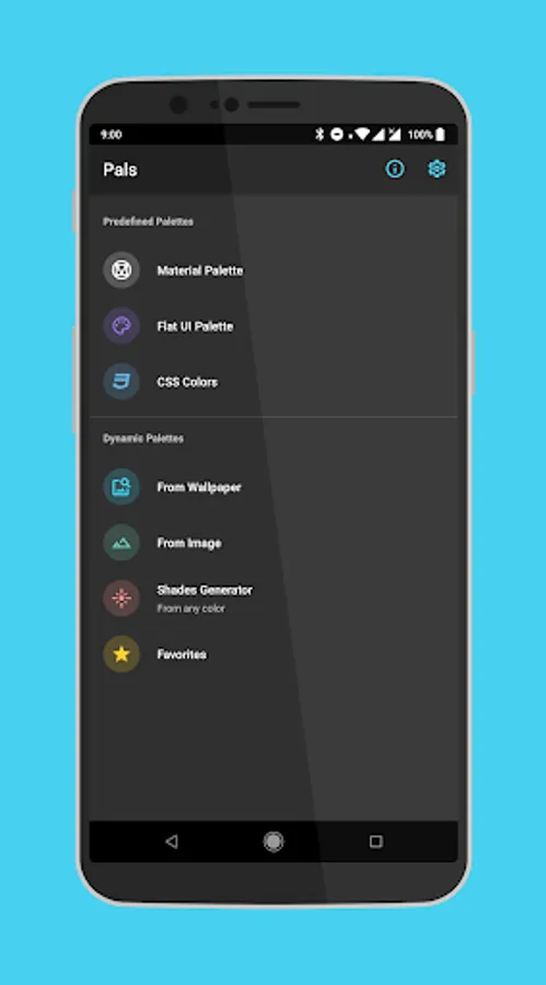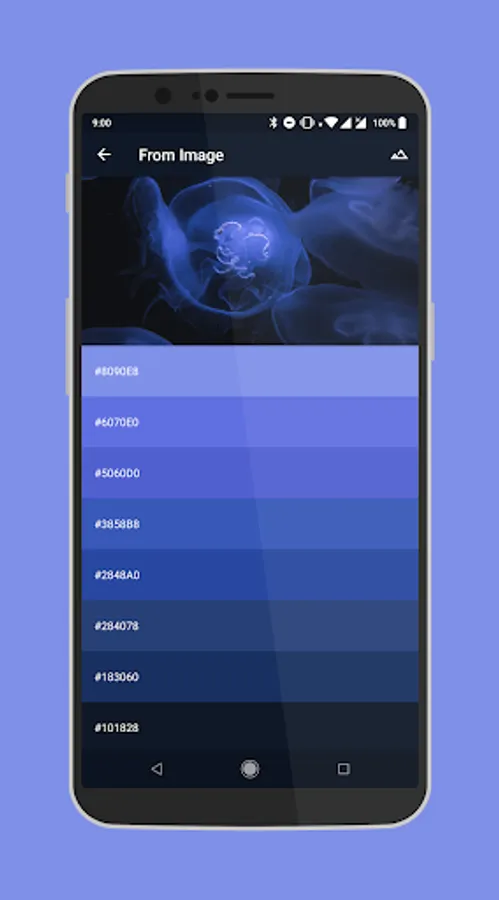 Additionally, you can generate palettes from any image, from your device wallpaper and even from any color you desire.