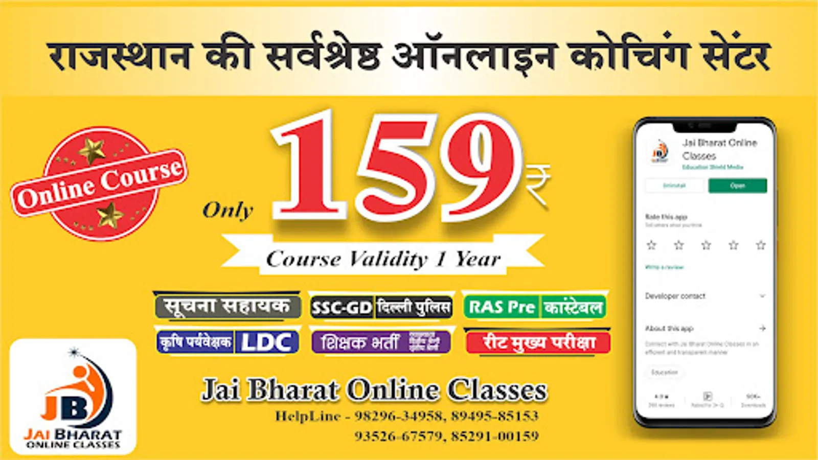 JAI BHARAT ONLINE CLASSES has launched its new educational android app for providing easily affordable education, online classes and study material related to various competitive examinations.