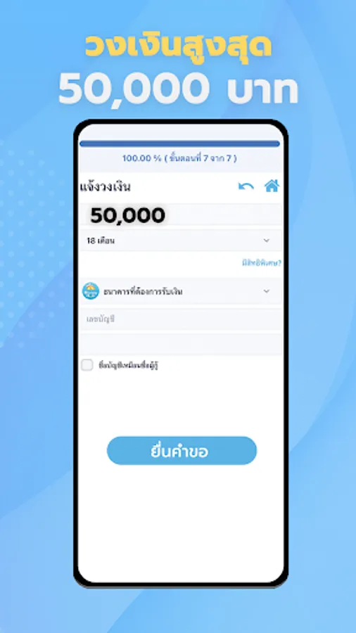The loan amount is 5,000 baht, you will receive the principal amount of 5,000 baht.