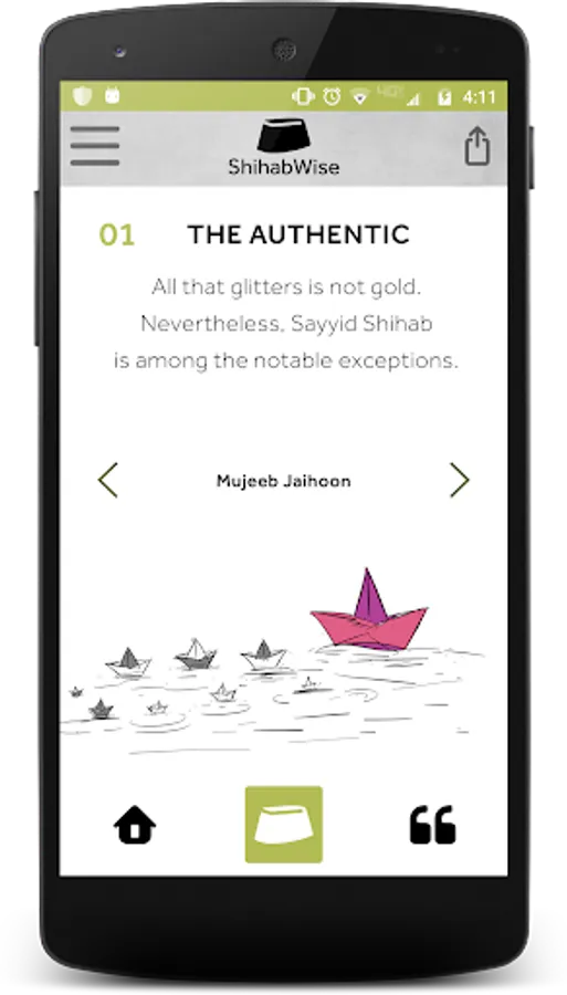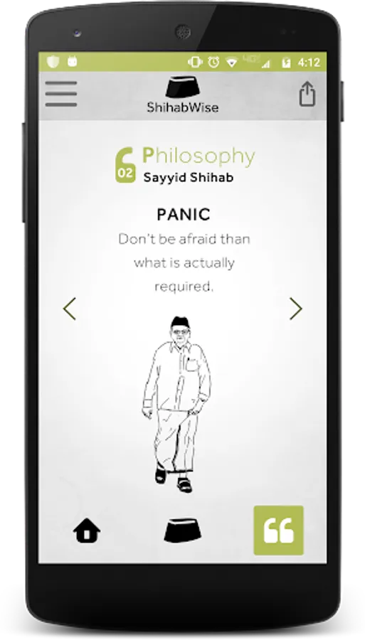 The intuitive user interface (UI) is developed by a Dubai-based designer with bare minimum hues. The drawings accompanying the quotations are fruits of deep study and imagination to reflect the message of the text. This is the first of its kind for Sayyid Shihab’s writings to have a graphical representation. Each illustration is drawn in black and white line drawings on a matte surface like background, maintaining perfect measurement accuracy possible of Sayyid Shihab’s body dimensions and language.
