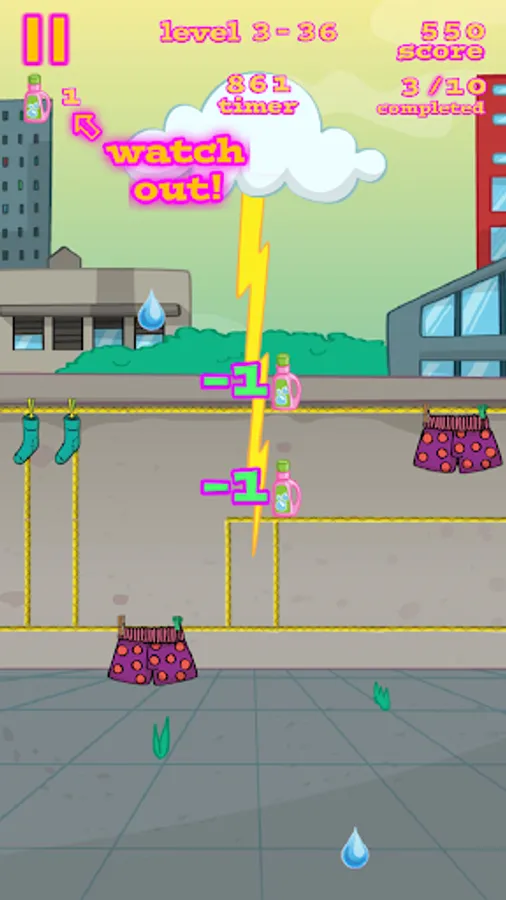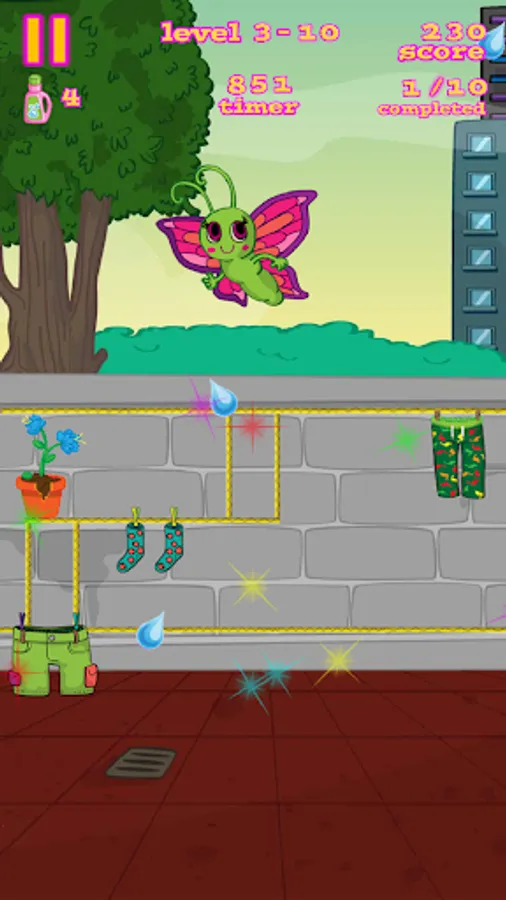 Just tap, tap, tap to move clothes along the lines! Make sure to avoid the rain, bubbles and all kinds of crazy-fun enemies! . Meet Wilma, our new butterfly friend who will turn everything around! Beware of bubbles, and watch the lines, which change as you make progress. New items will unlock throughout the game.