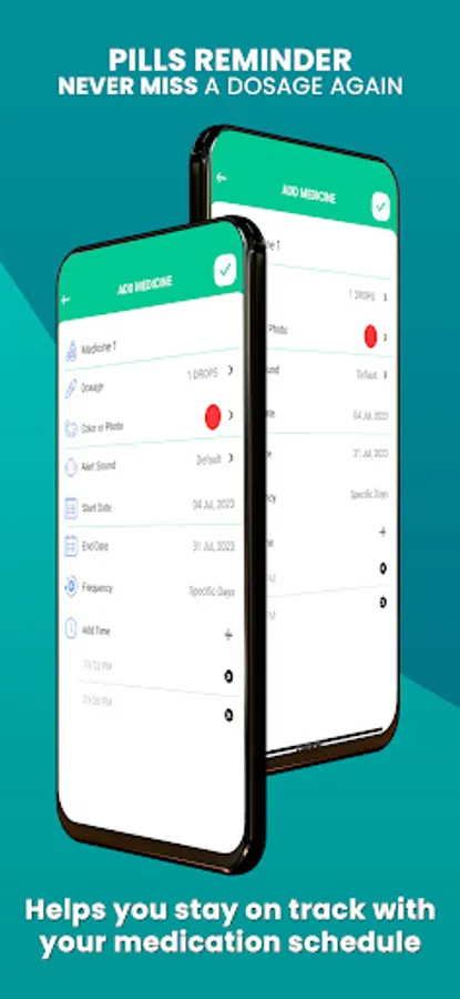Start and End Dates: To accommodate varying treatment durations, Pills Reminder allows you to set the start and end dates for each medication. This feature is particularly useful for short-term treatments or when multiple medications are prescribed at different times.