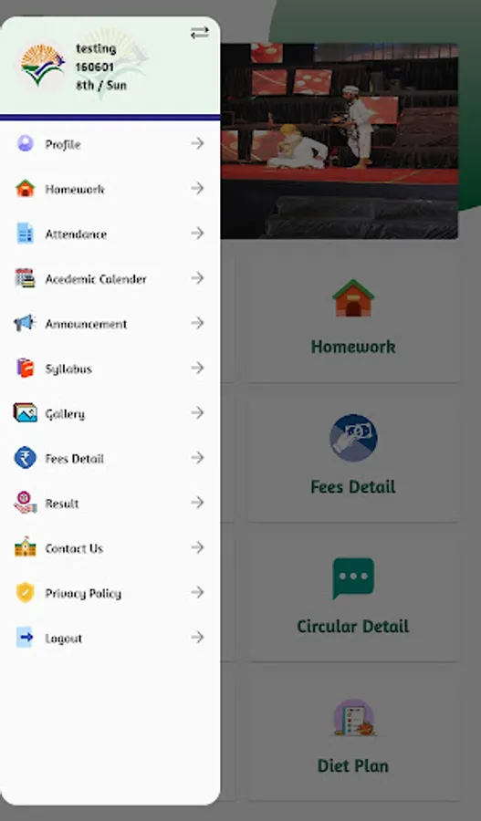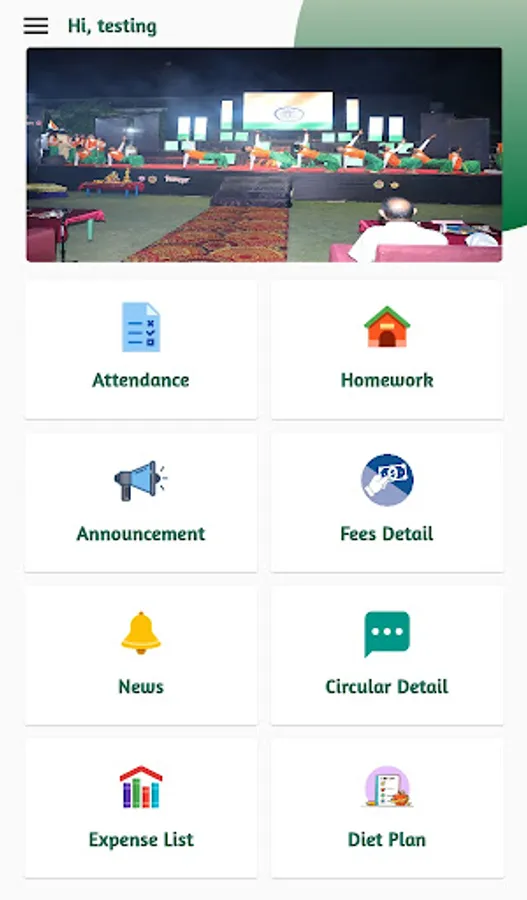 To induce leadership quality, healthy competition and team spirit, Co- curricular activites are introduced house basis. The houses have significant names Unity(Red), Wisdom(Green), Glory(Blue) and Courage(Yellow). They are symbolized by Louts, Banyan tree, Peacock and Tiger respectively. These all are our National Symbols.