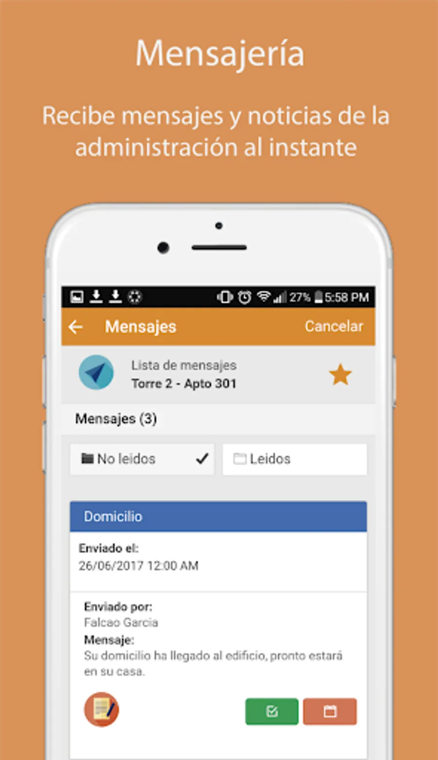 Send messages to the goal Authorizing the entry of people and addresses to your apartment.